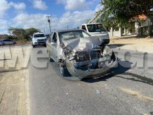 Diaranson mainta a drenta informe di un accidente cu hende herida banda di J.R. Autocenter na Turibana, mesora a dirigi tanto polis como ambulans na e sitio. Na yegada di e patruya a bin compronde cu e chauffeur di e Toyota Yaris no a regula su velocidad ni a mantene distancia a bay dal tras di un Ford Ecosport. E impacto tabata fuerte y e chauffeur di e Yaris a resulta herida. Na yegada di e ambulans nan a atende e victima.