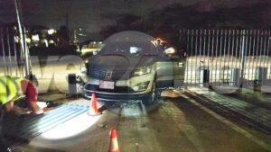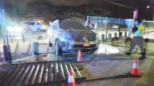 Diahuebs madruga a drenta informe di un accidente na Del Rey Appartments na Kamay, mesora a dirigi un patruya na e sitio. Na yegada di e patruya a bin compronde cu e chauffeur di e Lincoln s.u.v. bayendo nort cu velocidad halto no a para na final di e caminda “T” di Kamay y a bay dal riba e pilon subi esaki y bay dal e cura di Del Rey Appartments kibra. Afortunadamente ningun hende a resulta herida pero polis a nota cu e chauffeur ta burachi y ora a pone test esaki a sali malo y a detene pa ocasiona un accidente bao influencia di alcohol.