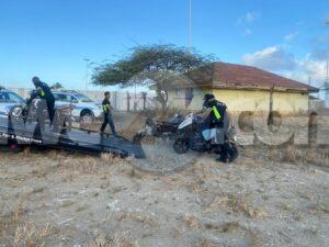 Diahbuebs mainta a drenta informe di cu den e mondi banda di e veld di Riverplate tin como 5 motorcycle banda di otro algun parti desmantela, mesora a dirigi un patruya na e sitio. Na yegada di e patruya a bin encontra cu 3 brommer y 2 scooter un parti desmantela. Polis mesora a confisca esakinan pasobra tin varios keho di ladronicia di esakinan si e doño por reconose su pertenencia e por tuma contacto cu warda di Polis di Santa Cruz.