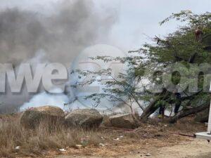 Diasabra atardi a drenta informe di cu tin candela cu huma toxico na e dam di Saliña, mesora a dirigi unidadnan bomberil na e sitio. Na yegada di e trucknan di bombero a bin constata cu aki ta trata no solamente di sushi na candela pero tambe materialnan toxico y venenoso pa salud di hende. Mesora nan a inicia un combate pa asina logra di paga e candela aki.