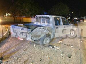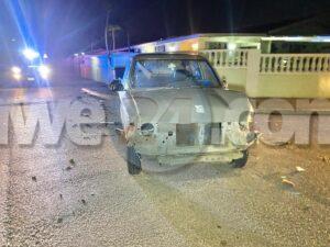 Diadomingo madruga a drenta informe di un accidente cu impacto masha fuerte mes na Madiki Kavel, mesora a dirigi un patruya na e sitio. Na yegada di e patruya a bin compronde cu e chauffeur di un Mazda s.u.v. bayendo pabao a bay na su man robes baha caminda dal un pickup Toyota double cab cu tabata staciona banda di caminda, dal esaki pusha e pickup contra muraya mand’e full riba caminda. Polis a nota cu e chauffeur ta burachi y a detene pa a core auto bao influencia y causa un accidente. Afortunadamente ningun hende a resulta herida.