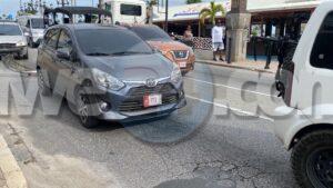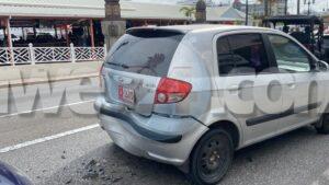 Diamars atardi a drenta informe di un accidente entre 5 vehiculo dilanti Lucy’s, mesora a dirigi patruya na e sitio. Na yegada di patruya na e sitio a bin constata cu aki chauffeur di un vcar KIA Forte no a regula su velocidad ni mantene distancia y a bay dal tras di un Hyunday Getz su dilanti. E impacto di esaki a manda e Getz bay dal tras di e Honda UTV vcar su dilanti. E impacto di esaki a manda e UTV bay pega tras di un Toyota AGYA. E chauffeur di e Toyota a purba break pero toch invano ya cu esaki a bay touch tras di e Suzuki Jimny su dilanti. Afortunadamente ningun persona a resulta herida den e accidente aki. Por a tuma nota cu e Getz a ricibi mas danjo material y te asta a e bumper a los di e auto. Polis a tuma datos di e accidente aki.