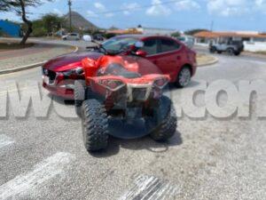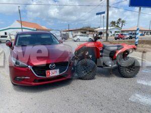 Diasabra mainta a drenta informe di un accidente na Paradera, mesora a dirigi un patruya na e sitio. Na yegada di e patruya a bin compronde cu aki ta trata di un accidente unda cu un quadracer no a duna preferencia y a bay bira na man robes dilanti un auto di direccion contrario y nan a adal den otro. Afortunadamente ningun hende a resulta herida.