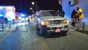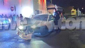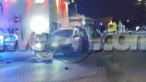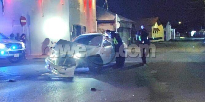 Diasabra anochi a drenta informe di un accidente na e crusada Avenida Alo Tromp cu Emmastraat, mesora a dirigi un patruya na e sitio. Na yegada di e patruya a bin compronde cu aki ta trata di un accidente unda cu e chauffeur di un Mitsubishi Lancer biniendo for di pabao den Avenida Alo Tromp no a para pa duna preferencia na e s.u.v. biniendo for di nort den Emmastraat y nan a dal den otro. Inmediatamente e chauffeur di e Lancer a baha core bay for di e sitio lagando e auto atras. Afortunadamente ningun hende a resulta herida. Como cu e chauffeur di e Lancer a desaparece polis a confisca e auto pa mas investigacion.