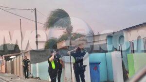 Diaranson atardi a drenta informe di un bringamento cu machete y menasa na Mandolinstraat, mesora a dirigi patruyanan na e sitio. Na yegada di e patruya ya caba e bringamento a stop pero a polis haya sa cu tabata tin arma envolvi cu menasa y hasta intento pa mata. Polis a haya sa y a bay pa detene 3 sospechoso na un cas. Como cu e sospechosonan no kier a sali a pidi refuerso di e team di aresto cu ordo di fiscal pa drenta y busca e 3 sospechosonan. Nan no a resisti contra nan detencion y a bay cu nan warda di polis. Polis a confisca un auto tambe cual a ser usa pa mande riba e otro partido.