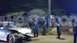 Diasabra madruga a drenta informe di un accidente na Tanki Leendert. Mesora a dirigi un patruya na e sitio. Na yegada di e patruya a bin compronde cu un chauffeur masculino lo a perde control di e auto y a bai dal den un baranca. Polis a detene e chauffeur masculino cu lo tabata bao influencia. Despues polis a ricibi un tip cu e chauffeur lo tabata un dama cu tabata presente. Aki mesora polis a test e tambe y e tambe lo tabata bao influencia. Polis a detene ambos persona y a transportanan pa warda di polis unda nan lo tin cu declara ken enberdad tabata na stuur.
