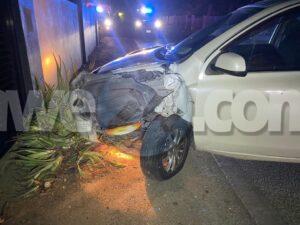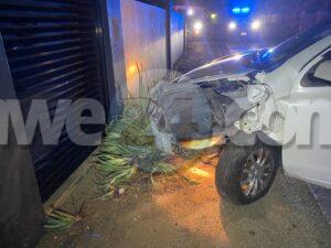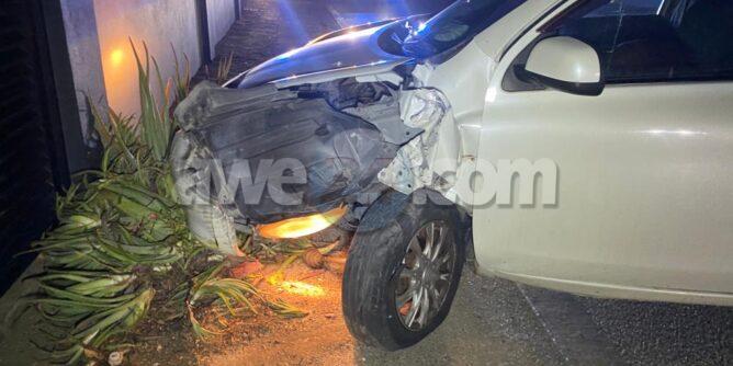 Diadomingo madruga a drenta informe di accidente na Seroe Blanco unda cu e chofer ta intenta pa bandona e sitio. Mesora a dirigi patruya na e sitio, na yegada di e patruya a bin compronde cu e chofer di e Nissan March bayendo Noord a bai na banda robes di e caminda dal riba un muraya di cas. Affortunadamente ningun persona a resulta herida.