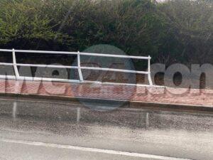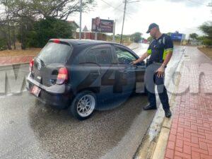 Dialuna mainta a drenta informe di un accidente net na e brug pariba di Banco di Caribe na Wilhelminastraat, mesora a dirigi un patruya na e sitio. Na yegada di e patruya a bin compronde cu e chauffeur di un Nissan March saliendo for di e rotonde a slip perde control, subi acera kap 2 tire y bay dal riba e reling di e brug. Railing cu ta net siman pasa nan a dreche despues di basta dia di un otro accidente. Despues di a dal riba e reling e vehiculo a bay bek na man drechi y keda para eynan. Afortunademente ningun hende a resulta herida.