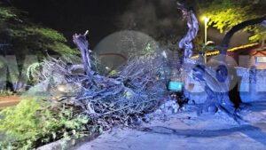 Diamars anochi a drenta informe di cu un mata grandi a cay riba caminda di Washington banda di Papiamento Restaurant, mesora a dirigi un patruya na e sitio. Na yegada di e patruya a confirma cu e mata grandi a cay riba caminda y polis a guia e trafico pa desviacion. Ademas a solicita presencia di D.O.W. pa asina bin corta y kita e mata for di caminda.