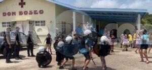 Diabierna mainta polisnan a duna un demostracion di e trabao di polis na e muchanan ora cu nan tambe por a bisti e ekipo di e mobiele eenheid y nan mester a enfrenta un grupo di muchanan di e camping cu a lanta contra e juffrouwnan ya cu nan kier “Pizza” pero e juffrouwnan NO KIER treat y grupo tabata tira blaasnan cu awa riba e muchanan cu a bisti manera polis di e mobiele eenheid. Tanto e muchanan cu a bisti como polis y esnan protestando a pasa masha dushi mes e experiencia aki y a echt nota cu polisnan ta amigo di tur hende!