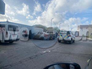 Diamars mainta a drenta informe di un accidente patras di e pomp station na Seroe Blanco. Mesora a dirigi patruya na e sitio. Na yegada di e patruya a bin compronde cu aki un pickup cu no tin seguro y e chaufeur no a pone e handrem y esaki a hala bai atras dal un auto pa colmo e pickup no ta segura pero e chaufeur a palabra cu e lo cubri e gastonan pa e daño casiona na e auto. Afortunadamente ningun persona a resulta herida.