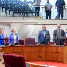 floral pa e dignatarionan. Minister Geoffrey Wever, Parlamentario Sra. Shailiny Tromp-Lee y Sr. Hendrik Tevreden y director di diferente departamento di gobierno tambe tabata presente na e mainta special aki.