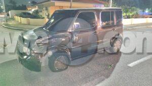 Diadomingo madruga a drenta informe di un accidente na Vondellaan, mesora a dirigi un patruya na e sitio. Na yegada di e patruya a bin compronde cu e chauffeur di un Nissan Cube a bay pasa un Kia Rio na banda drechi net ora cu esaki a bay bira na man drechi pa staciona y nan a dal den otro. Polis a nota cu e chauffeur di e Cube lo ta bao influencia y a test e. A bin resulta cu ela surpasa e limite permiti pa ley y a detene mesora pa core auto bao influencia y causa un accidente. Afortunadamente ningun hende a resulta herida.