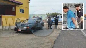 Diadomingo atardi a drenta informe di cu tin 2 persona arma den e Toyota Tercel berde A30546 cu a caba di menasa un hende cu arma di candela. Mesora a alerta tur e patruyanan riba caya pa e vehiculo aki. Un rato despues a drenta informe cu e vehiculo en cuestion ta para na Huliba Bar, polisnan a reuni na Save More y di eynan a sali bay den grupo pa baha inespera riba nan. Ora a acerca nan un di nan a logra core bay mientras e otro si a ser captura y a logra confisca e auto. Den e auto a logra haya un rifle. E otro sospechoso ta lomba sunu y a core bay sconde den Rooiweg. Polis keto bay ta buscando.