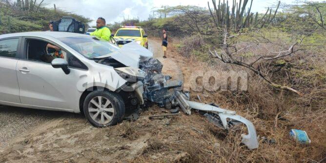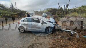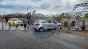 Diamars atardi a drenta informe di un accidente cu hende herida na e birada pariba di airport, mesora a dirigi tanto polis como ambulans na e sitio. Na yegada di e patruya a bin compronde cu aki ta trata di un accidente unda un vehiculo s.u.v. a slip riba e caminda muha na e birada bay otro banda dal auto y despues bay cay den e rooi. Debi na e impacto e dama chauffeur di e auto a resulta levemente herida. Na yegada di e ambulans nan a atende e victima na e sitio mes.