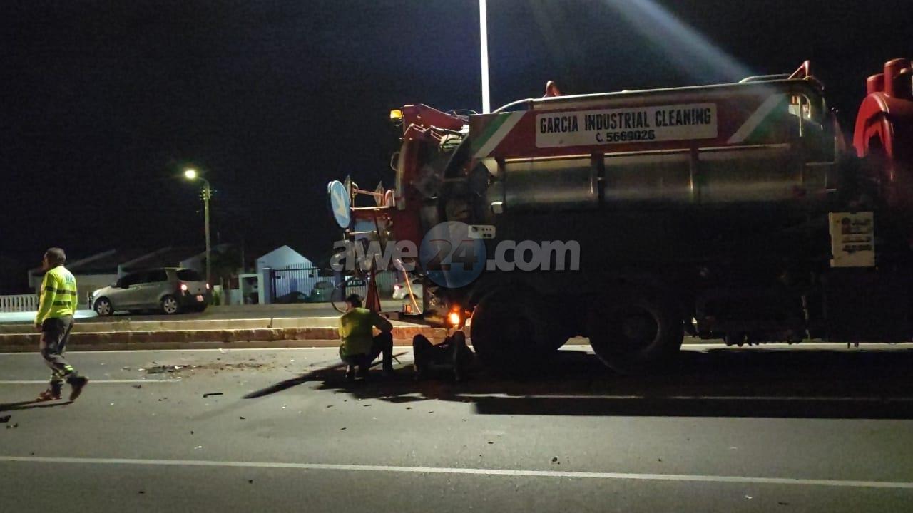 Diahuebs anochi a drenta informe di un accidente riba Watty Vos Boulevard serca di e mufflershop, mesora a dirigi patruya na e sitio. Na yegada di patruya na e sitio a bin compronde cu aki chauffeur di un auto no a pone atencion na e caminda su dilanti y a bay dal tras di un truck cu tabata muhando mata riba e median. Afortunadamente ningun persona a resulta herida den e accidente aki pero si e impacto tabata fuerte y a causa hopi danjo material na e auto. Polis a tuma datos di e accidente aki.