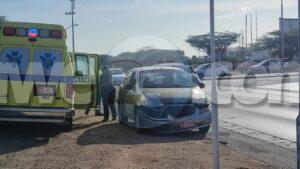 Diabierna atardi a drenta informe di un accidente cu ne levemente herida na e crusada banda di Pricesmart, mesora a dirigi tanto polis como ambulans na e sitio. Na yegada di e patruya a bin compronde cu akia raa di un accidente unda cu e dama chauffeur di e Chevrolet a bay subibcaminda pero no a mira e Nissan March biniendo for di pabao y a bay dal net riba e rim di e March. E dama chauffeur di e Chevrolet a resulta levemente herida. Na yegada di e ambulans nan a atende e victima na e sitio mes.