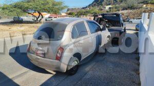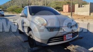 Diamars atardi a drenta informe di cu un auto Nissan March a aparece banda di e ex-consultorio di Dr. Mungra na Hooiberg, mesora a dirigi un patruya na e sitio. Na yegada di e patruya a bin constata cu enberdad tin un Nissan March a ser haya eynan para cu e number A27998 cual lo ta e vehiculo cu a ser horta for di Sabana Blanco tur e otro detayenan di e auto horta ta cuadra cu esaki. Como cu un denuncia a ser haci polis a confisca e vehiculo aki pa mas investigacion. E doño a keda masha agradecido na nos media cu a publica e noticia aki mesora pa asina rapidamente e pueblo a reacciona y a avisa di esaki.