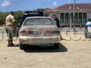 Dialuna mainta polis a nota un auto cu plachi number falso, mesora polis a para e auto den Wilhelminastraat, ora polis a pidi pa documentonan di e auto e chauffeur no por a mustra ningun documento y e chauffeur a bisa cu ela caba di sak’e for di garage. Polis a pidibe chauffeur pa rijbewijs e chauffeur a bisa cu e no tin’e. Polis a pidi e chauffeur pa e baha y entrega e yabi ya cu nan ta confisca e auto. Polis a pidi takelwagen y a bay cu e auto pa warda di Balashi.