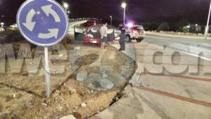 Diabierna madruga a drenta informe di un accidente na Paperclip rotonde na Sero Patrishi, mesora a dirigi patruya na e sitio. Na yegada di e patruya a bin topa cu e auto V-4409 Hyundai i10 cora cual a bini cub velocidad halto y e chauffeur turista a reacciona mucho laat y a dal su taira nan na e rand di e rotonde y kap esakinan. Afortunadamente ningun hende a resulta herida.