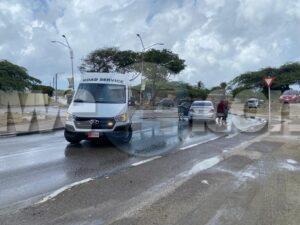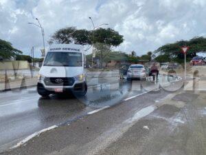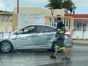 Diasabra mainta a drenta informe di un accidente na salida di e rotonde Tarabana pa bay Meiveld, mesora a dirigi un patruya na e sitio. Na yegada di e patruya a bin compronde cu net despues di cu awa a yobe un tiki e caminda tabata “too slippery” pa Van di “too fast 4 U” y esaki na su salida di e rotonde a bay na man robes dal riba un Hyundai Accent di direccion contrario. Afortunadamente ningun hende a resulta herida.