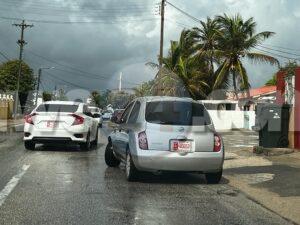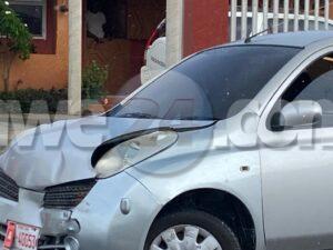 Diasabra mainta a drenta informe di un accidente na Sero Blanco, mesora a dirigi un patruya na e sitio. Na yegada di e patruya a bin compronde cu aki ta trata di un accidente unda cu e chauffeur di un Nissan March bayendo direccion Oranjestad no a regula su velocidad ni a mantene distancia a brake e ultimo momento y a slip riba caminda muha y a bay dal tras di un Hyundai van. Afortunadamente ningun hende a resulta herida.
