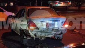 Diadomingo madruga a drenta informe di un accidente banda di e consultorio di Dr. Yagua na Noord, mesora a dirigi un patruya na e sitio. Na yegada di e patruya a bin compronde cu aki ta trata di un accidente unda un chauffeur burachi den un Kia Rio yegando na final di e caminda “T” no a regula su velocidad ni a mantene distancia a bay dal tras di un Nissan Almera. Afortunadamente ningun hende a resulta herida. Polis a detene e chauffeur burachi pa a core auto bao influencia y causa un accidente.
