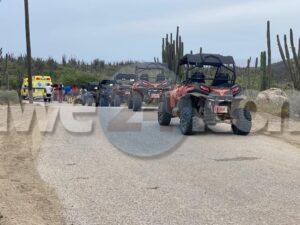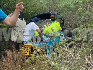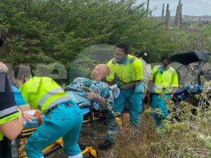 Dialuna atardi a drenta informe di un accidente cu hende herida riba e caminda di Cruz na Alto Vista, mesora a dirigi tanto polis como ambulans na e sitio. Na yegada di e patruya a bin compronde cu den e biradanan un pareha di edad coriendo den e tour di UTV a baha caminda drenta mondi. Debi na esaki e pareha a haya basta rasca hinca y hasta golpi y tabata keha di dolor. Na yegada di e ambulansnan nan a atende e victimanan y transporta nan pa hospital.