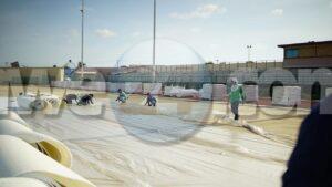 a combersa cu representantenan di Bohama Aruba N.V. cu ta encarga cu reconstruccion di e veld y ingeniero Sr. Daniel Santos di T3 Global Projects cu ta instalando e yerba artificial. T3 Global Projects ta un compania cu ta instala centenares di veld rond di mundo. E marca di e