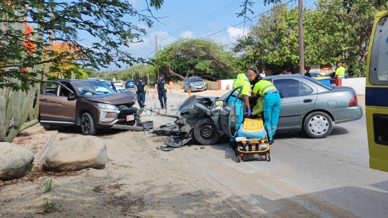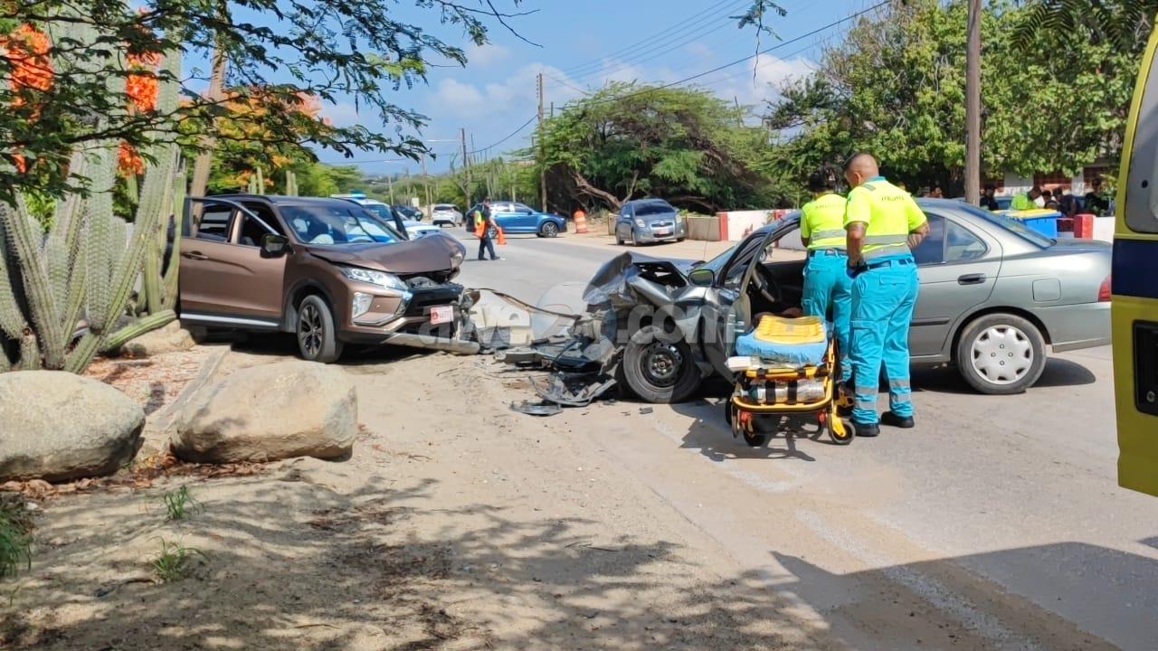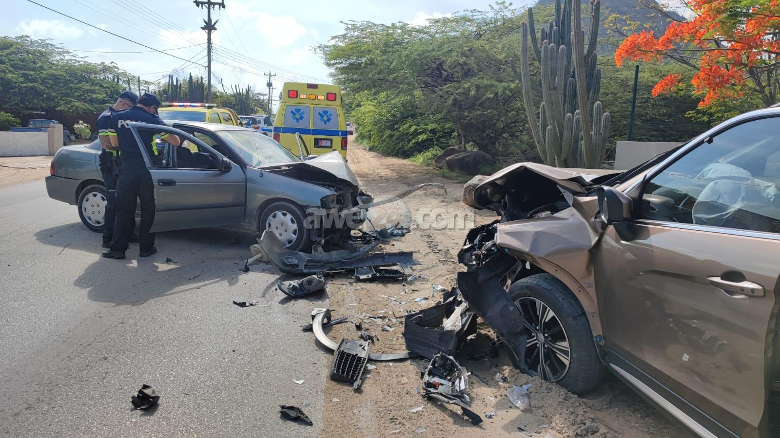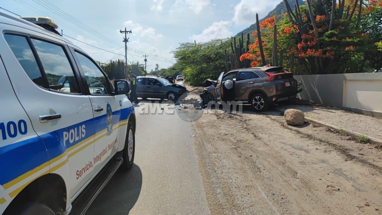 Diasabra atardi a drenta informe di un accidente cu hende herida na Canashito. Mesora a dirigi tanto polis como ambulans na e sitio. Na yegada di e patruya a bin compronde cu chauffeur di un Nissan Sentra lo a bai otro banda di e caminda y a dal den un Mitsubishi. E impacto tabata fuerte y a keda varios persona herida. Na yegada di e dos ambulansnan nan a atende e victimanan y a transporta nan pa hospital. Polis a tuma datos di e accidente aki.