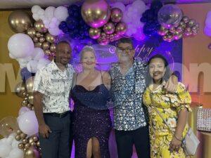 ORANJESTAD: Diasabra ultimo, rondona pa famia-y amistadnan Sra. Meredith Dijkhoff a celebra engrande su 60 cumpleaños. E bunita recepcion a tuma luga na residencia di famia Dijkhoff na Tanki Leendert. Sra. Meredith cariñosamente yama Mary ta casa di Sr. Chiki Dijkhoff, mama di Ashline Dijkhoff y Eldrick Dijkhoff y wela di K’ drian yElk-rae. Minister Endy Croes acompaña pa su kerida esposa Dilailah Croes tabata presente pa celebra e ocasion special aki cu Sra. Mary. Un bunita fiesta di kita sombre y excelente buffet cu Sra. Mary a prepara pa varios luna pa celebra su fecha natal. Sr. Derwin Kemp “Kempy” a habri e fiesta cu ebunita gospel “Mi baranka” pa gradici Dios cu Sra. Dijkhoff a yega e bunita edad di 60 aña. Un tremendo fiesta den union familiar unda a reina un dushi ambiente. E banda Shine Music a deleita tur esnan presente cu nan exitoso repertorio. Aruba su Soca Monarch y Road Jam di Carnaval 69 Jair “Casper”Dijkhoff y e surprise di e anochi Freddy Rasta a pone e cherry riba e bolo. Minister Endy Croes ta desea Sra. Meredith Dijkhoff hopi bendicion y hopi aña mas di bida y salud! Masha pabien!