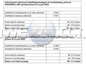 Ta importante pa menciona cu den e cifranan di loonbelasting ta inclui tambe e primanan di AOV/AWW y AZV y ta trata sumanan cu e dunador di trabao a retene for di su empleadonan y no a paga esaki na Departamento di Impuesto. Pues ta trata sumanan di impuesto y primanan social cu ta coresponde cu e responsabilidad di pago di e empleado cu no a wordo paga debidamente. Pago di BBO/BAVP/BAZV ta coresponde cu e sumanan di ganashi di un empresa caminda cu e 7% di impuesto cu ta aplicabel no a wordo paga na Departamento di Impuesto.
