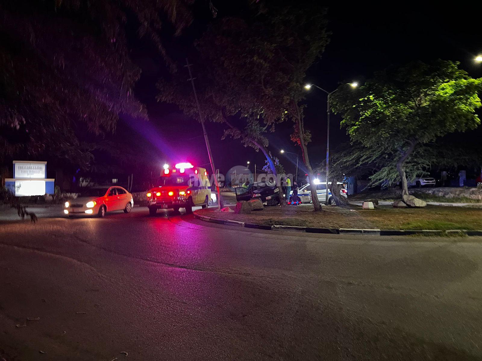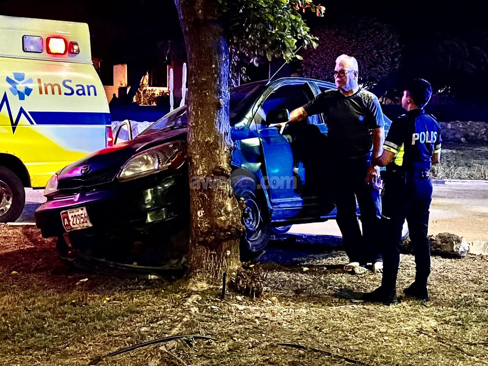 Diadomingo anochi a drenta informe di un accidente cu hende herida na rotonde Tarabana. Mesora a dirigi tanto polis como ambulans na e sitio. Na yegada di e patruya a bin compronde ci chauffeur di un Toyota Yaris blauw lo a subi e rotonde y dal den un mata. Polis a sospecha cu e chauffeur lo tabata bao influencia y a pone hasi e alco-test. E chauffeur lo a pasa e limite y mesora polis a detene e chauffeur. Ambulans a atende cu e pasahero na sitio mes. Polis a tuma datos di e susedido aki.