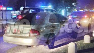 Diaranson madruga durante patruya na e hotzone banda di e hotelnan highrise na Palm Beach polis a nota un obstaculisacion di trafico riba caminda. Ora a yega serca a nota cu ta un auto a ser laga atras pa su cuenta. Mesora a solicita un takelwagen pa kita e auto aki cu ta strobando e fluho di trafico.