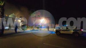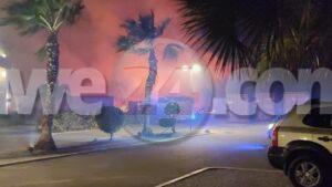 Diaranson anochi a drenta informe di cu tin un candela di mondi grandi banda di Courtyard, mesora a dirigi varios patruya y unidadnan bomberil na e sitio. Polisnan a percura pa sera e camindanan rond y tambe evacua e huespednan di e hotel mientras bomberonan a enfoca pa combati e candela. Despues di un continuo combate directo bomberonan a logra vence e bataya y a paga e candela por completo.