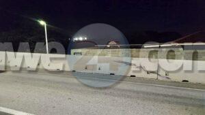 Diabierna anochi a drenta informe di un accidente riba E.J.”Watty” Vos blvd. yegando e brug na Meiveld biniendo for di Paperclip rotonde, mesora a dirigi patruyanan pa e sitio. Na yegada a bin compronde cu e chauffeur di un Ford Edge bayendo zuid cu velocidad halto a perde control na subida di e brug y a accidenta su so cu su so. Afortunadamente ningun hende a resulta pero como cu e chauffeur tabata burachi polis a detene e chauffeur. Takelwagen mester a bini pa kita e auto destrui.