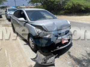 Diadomingo merdia durante patruya den Belgiëstraat polis a bin topa cu un accidente cu hende herida y cu a caba di pasa. Aki ta trata di un accidente unda cu un Hyundai Accent a bay dal tras di un Chevrolet Spark. E impacto tabata fuerte y e 2 personanan sinta patras den e Spark tabata sinti dolor na schouder. Mirando cu tin 2 hende herida ta keha di dolor a pidi ambulans na e sitio. Polis a nota cu e chauffeur ta bao influencia y a bay test e y a bin resulta cu e ta bao influencia y polis a detene. E chauffeur a declara cu ela brake pero esaki no a gara. Vehiculo di transporte a bin busca e chauffeur deteni y a bay cun’e warda di polis. Mientras na yegada di e ambulans a atende ambos victima pero a bay cu un di nan so pa hospital.