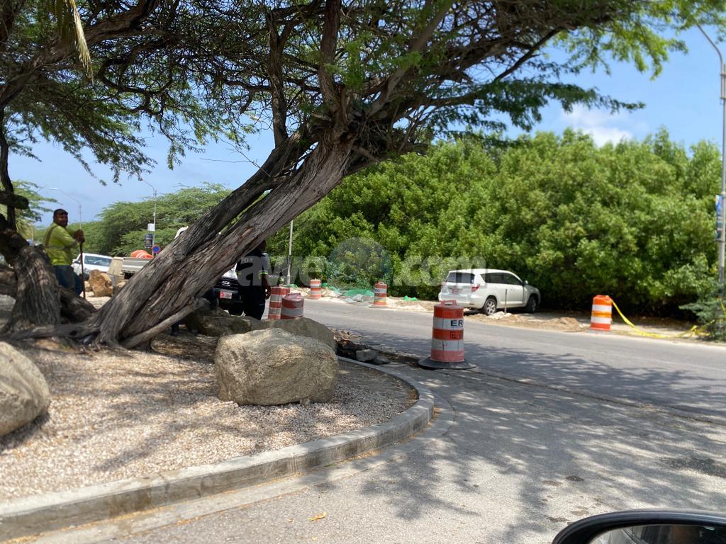 Dialuna mainta a drenta informe di cu tin un auto ta stroba contratistanan di coba banda di caminda dilanti Riu Palace, mesora a dirigi un patruya na e sitio. Na yegada di e patruya a bin topa cu un Toyota SUV RHD cu ta para riba un area sera y demarca pa trabaonan di cobamento cu lo mester ser haci awe, pero den oranan di mainta tempran aparentemente un chauffeur lo a yega y kibra e lint entre e baricadanan y a bay parkeer den e area. E contratista a coba tur otro parti for di tempran caba pero no por a sigui cu e trabao y a yama polis. Polis a pidi pa un takelwagen di Nagico pero despues di mas di 2 ora y mey ta warda takelwagen no a presenta, pero net na e momentonan ey a haya sa ta cual trahador a para eynan y cu esaki ta biniendo pa hala su auto. E ora ey numa un takelwagen a presenta y polis a nenga esaki ya cu a logra haya e chauffeur pa hala e auto. Aun asina despues di mas di 3 ora y mey e ora numa e chauffeur a presenta y a bisa di a haya e lint kibra y a para eynan.