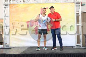 ORANJESTAD: Diadomingo ultimo, den oranan tempran di mainta a tuma luga e di 43 edicion di Turibana Race. E careda a conta cu mas di 400 participante cu a core 10.5 K den e area di Noord y vecindario. E participantenan a participa den tres (3) diferente categoria; individual, duo of duo gubernamental. Minister Endy Croes tabata presente pa duna sosten y motivacion na e participantenan. Na final di e mainta, emandatraio di Deporte a haci entrega di trofeo na e ganadonan den diferente categoria. Tabata reina un ambiente total banda di caminda unda cu famia–, colega– y amistadnan di e coredonan a bay duna apoyo. Sr. Luuk Loo (41:11) y Sra. Lana Gobert (43:37) a sali e ganadonan absoluto di e 43 edicion di Turibana Race 2023. Pa finalisa, Minister Endy Croes ta felicita IBISA Aruba cu a organisa e gran evento deportivo aki. Tambe, ta gradici tur cu a contribui pa haci e careda aki uno exitoso. Ademas di esaki, e mandatario di Deporte ta aplaudi tur esnan cu a participa den Turibana Race2023. Masha pabien na tur e ganadonan! Cu disciplina, deseo, dedicacion y determinacion ta logra.