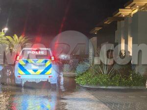Diaranson madruga a drenta informe di cu tin masha hopi awa ta core for di bao tera na Rooi Santo, mesora a dirigi un patruya na e sitio. Na yegada di e patruya a mira masha hopi awa saliendo for di bao tera continuamente pero no por a saca afor si ta awa di tubo di W.E.B. of dibe condominium eynan mes. Pa tur seguridad a yama W.E.B. y nan a bini mesora pa atende cu e problema.