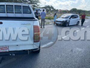 Diaranson mainta a drenta informe di un accidente cu hende herida pariba di e rotonde banda di Acero riba E.J.”Watty” Vos blvd, mesora a dirigi tanto polis como ambulans na e sitio. Na yegada di e patruya a bin compronde cu aki ta trata di un accidente unda cube chauffeur di un Honda Fit a bay subi e caminda net ora un pick-up tabata bini for di pariba y nan a dal den otro unda e pick-up a bay keda dwars riba e caminda y cu e chauffeur di e Honda Fit herida. Na yegada di e ambulans nan a atende e victima y a transporte pa hospital.