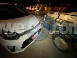 Diasabra anochi a drenta informe di un accidente banda di veld di Riverplate den Belgiëstraat, mesora a dirigi un patruya na e sitio. Na yegada di e patruya a bin compronde cu un dama chauffeur bao influencia coriendo un Honda Accord bayendo pabao den Belgiëstraat a baha caminda na man robes y a bay dal primeramente un Nissan Pick-up pusha esaki dal un Kia Picanto y alabes dal e Picanto rancando su bumper di patras y djey finalmente bay dal un auto Nissan pusha esaki riba muraya di e stadion di Riverplate. Polis a pone e dama supla y esaki a surpasa e limite y polis a bay over na detene e dama burachi. Den e accidente aki afortunadamente ningun hende a resulta herida.
