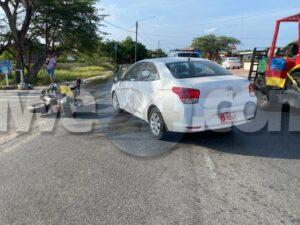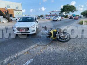 Diamars mainta a drenta informe di un accidente na Shaba, mesora a dirigi un patruya na e sitio. Na yegada di e patruya a bin compronde cu aki ta trata di un accidente unda cu un motociclista ta bay pasa un auto net ora cu esaki ta bay bira na man robes. E motociclista a dal e spiel y e porta di e auto di apenas 6 luna bieuw y a dal abao rasca su curpa pero no tabata desea atencion di ambulans.