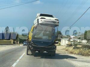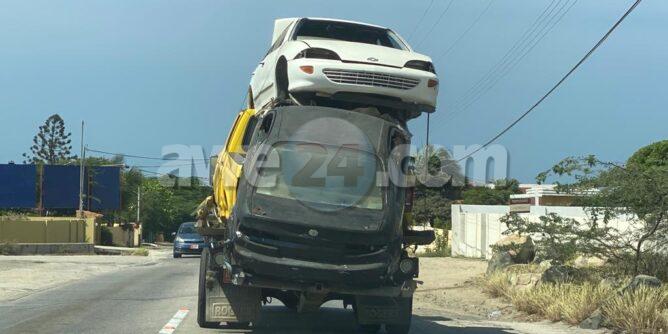 Diamars mainta un ciudadano a manda nos e imagennan aki unda por mira claramente con iresponsabel e chauffeur aki ta pa core cu e autonan asina riba e takelwagen preto. Nos a mustra un polis e foto aki y ela bisa esey ta contra ley y ta peligroso. Na e chauffeur nos ta bis’e pa e no haci esaki mas pasobra no ta e so ta riba caminda y asina e ta expone tur hende cerca den peliger y sorry no ta yuda!