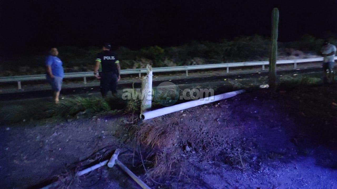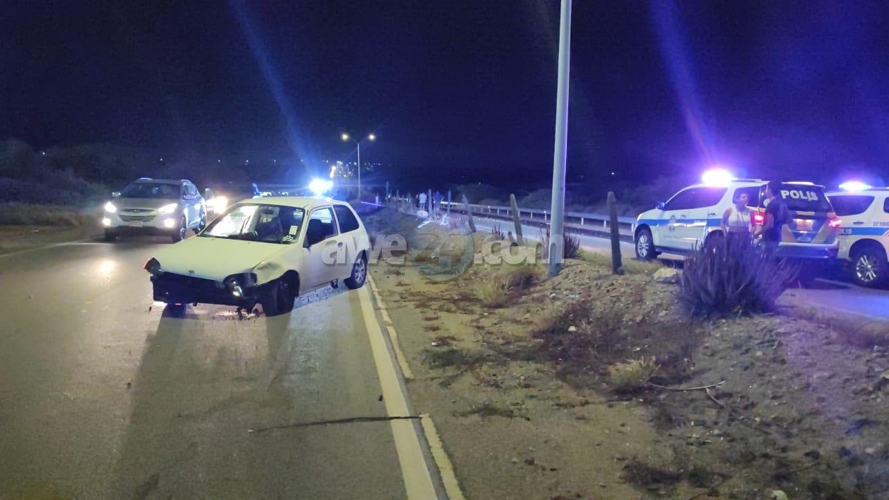 Diabierna anochi a drenta informe di un accidente riba e Green Corridor na Balashi, mesora a dirigi un patruya na e sitio. Na yegada di e patruya a bin compronde cu aki ta trata di un accidente unda cu e chauffeur di un Toyota Starlet a perde control subi e median dal un palo di lus kibra den esaki a spart piedra y tera riba e trafico contrario pone e chauffeur tambe perde control bay dal den banda y keda di banda riba caminda. Afortunadamente ningun hende a resulta herida.