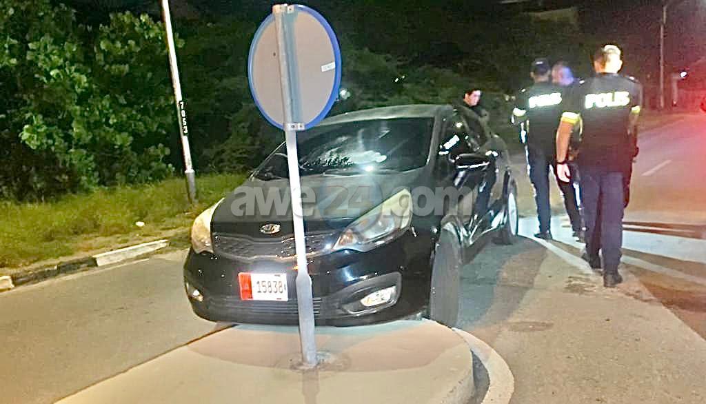 Diabierna madruga a drenta informe di un accidente banda di Chalet Suisse na Eagle Beach, mesora a dirigi un patruya na e sitio. Na yegada di e patruya a bin compronde cu aki ta trata un chauffeur burachi cu a pega soño tras di stuur y su auto a sigui bay dilanti y pega na e isleta. Polis a nota e chauffeur ta burachi y a detene pa core auto bao influencia y a bay dal riba e isleta.