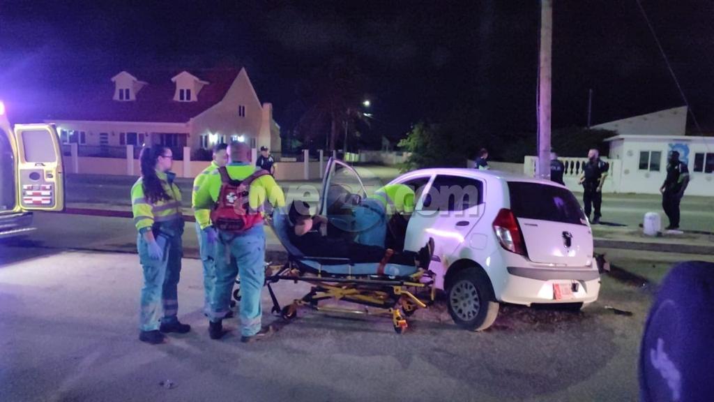 Diadomingo madruga a drenta informe di un accidente cu hende herida na Paradera, mesora a dirigi tanto polis como ambulans na e sitio. Na yegada di e patruya a bin compronde cu e chauffeur di e Hyundai i10 a bay subi caminda tumando un U-turn pero a calcula malo e velocidad y distancia y e auto Ford biniendo cu velocidad hopi halto a dal e mand’e bay dal un pilon di beton kibra esaki. Debi na e fuerte impacto e chauffeur di e i10 a resulta herida. Na yegada di e ambulans nan a atende e victima y a transporte pa hospital.