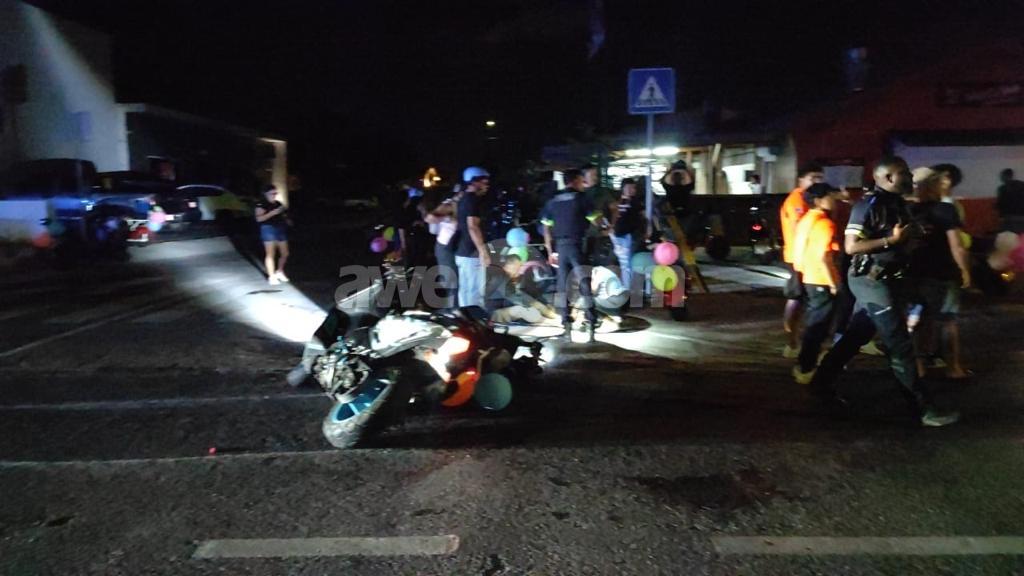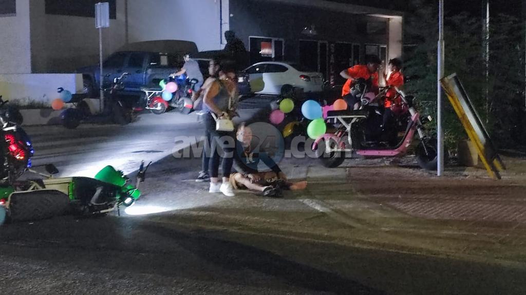 Diadomingo madruga a drenta informe di un accidente cu hende herida na Ponton, mesora a dirigi tanto polis como ambulans na e sitio. Na yegada di e patruya a bin compronde cu aki ta trata di un accidente unda un scooter a bay pasa un auto y diripiente a hay’e cu step di bateria sin lus patras y a bin dal riba esaki y e manehador di e step a cay y a herida su mes. Na yegada di e ambulans nan a atende e victima y a transporte pa hospital.