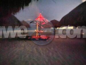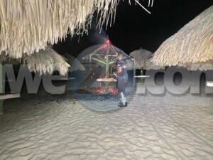 Diahuebs madruga a drenta informe di cu tin palapanan na candela na Eagle Beach, mesora a dirigi tanto polis como bomberonan na e sitio. Na yegada di e patruya a bin nota cu aki ta trata di 2 palapa cu a keda completamente kima lagando un mahos bista net un dia despues di Dia di Turismo unda ta comete destruccion na nos importante patrimonio.