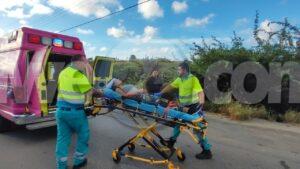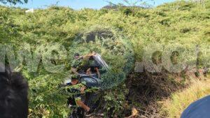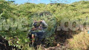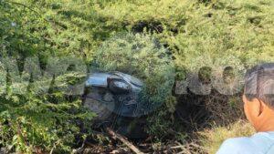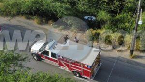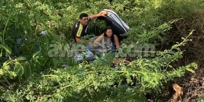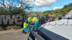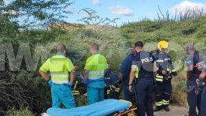 Diahuebs mainta a drenta informe di un accidente cu hende herida y pega den auto cu a kentel na Hooiberg, mesora a dirigi tanto polis, ambulans como tambe e equipo di rescate di bombero. Na yegada di e patruya a bin compronde cu un dama chauffeur bayendo pabao a desvia pa un cacho perde control bay na banda drechi di caminda dal riba “vangrail” bay na banda robes di e caminda cay den rooi y kentel. E auto a keda den banda riba algun rama di mata. Na yegada di e ambulans tabata un poco dificil pa saca e dama mientras na yegada di e bomberonan cu ayudo di e trapi a logra saca e dama for di e auto y e personal di ambulans a tuma e dama, a atende y transporte pa hospital.